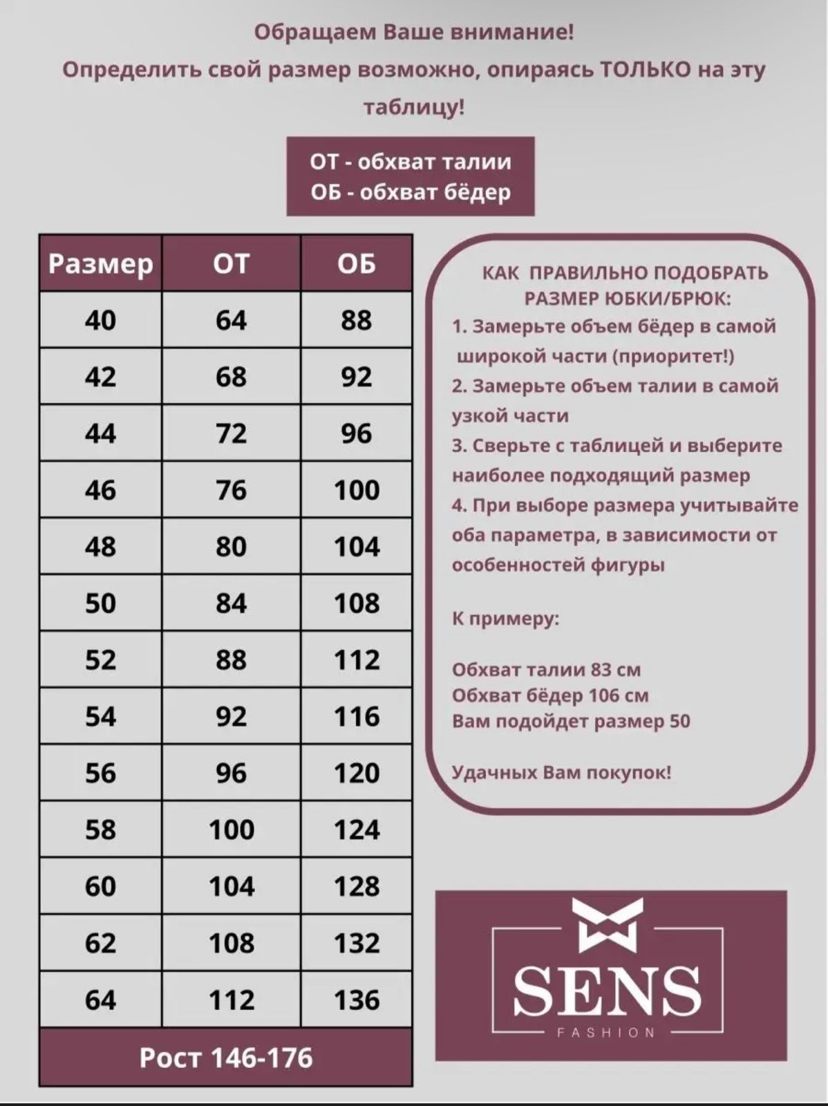 Брюки женские классические - это идеальный вариант для стильных и элегантных женщин, которые ценят комфорт и качество. Наша коллекция предлагает широкий выбор моделей, которые подходят для любого случая - от офисных встреч до праздничных мероприятий. Одежда больших размеров - это наша специализация. Мы заботимся о том, чтобы каждая женщина могла найти идеальную посадку и стиль, независимо от своей фигуры. Брюки с высокой посадкой и резинкой на талии обеспечат максимальный комфорт в течение всего дня. Высокое качество материалов и производства гарантирует долговечность и сохранение формы даже после многократных стирок. Наша коллекция включает в себя классические модели брюк, которые идеально подходят для офисной среды. Они имеют прямой крой и узкие штанины, что создает стройный и элегантный образ. Офисная одежда для женщин должна быть не только стильной, но и удобной - именно это мы предлагаем. Для подростков девочек у нас также есть широкий выбор моделей. Брюки с классическим кроем и зауженными штанинами подойдут для школы и других повседневных мероприятий. Мы также предлагаем укороченные брюки, которые подчеркнут молодежный стиль и модный образ. В нашей коллекции вы найдете различные цветовые варианты - от классического синего и серого до более ярких и насыщенных оттенков. Брюки с карманами и декоративными элементами добавят изюминку в ваш образ. Мы также предлагаем модели с обтягивающим эффектом, которые подчеркнут вашу фигуру и создадут эффектный образ. Брюки офисные костюмные - это не просто одежда, это стиль и уверенность. Мы предлагаем вам только лучшее - высокое качество, модные тренды и доступные цены. Не упустите возможность приобрести эти стильные и универсальные брюки и создать свой неповторимый образ. Покупайте сейчас и наслаждайтесь комфортом и стилем каждый день!