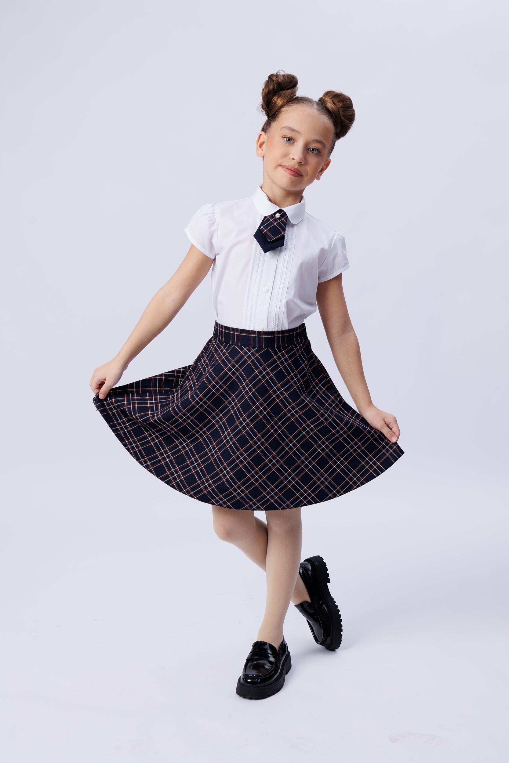 Юбка-солнце на поясе. Застежка боковая на замок-молнию. Ткань в клетку.