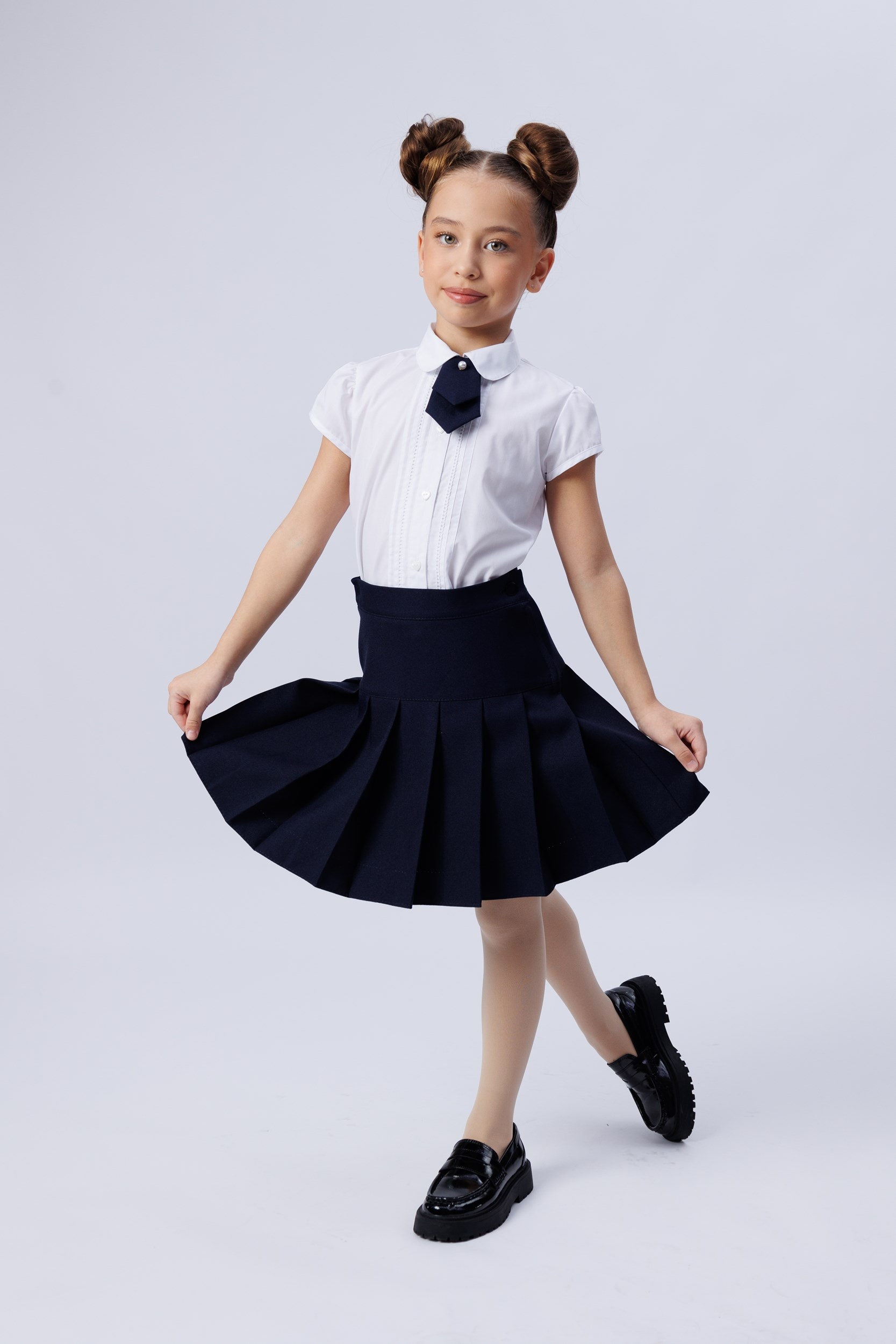 Юбка в складку однотонная синяя шк.ткань