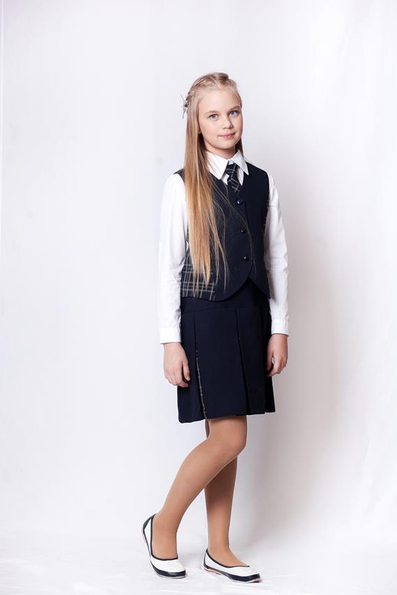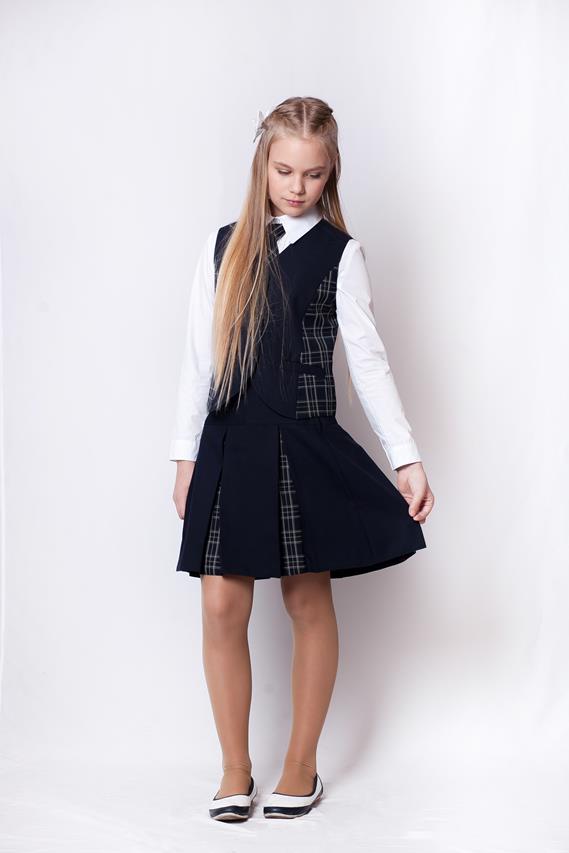 Юбка в складку комбинированная синяя шк.ткань