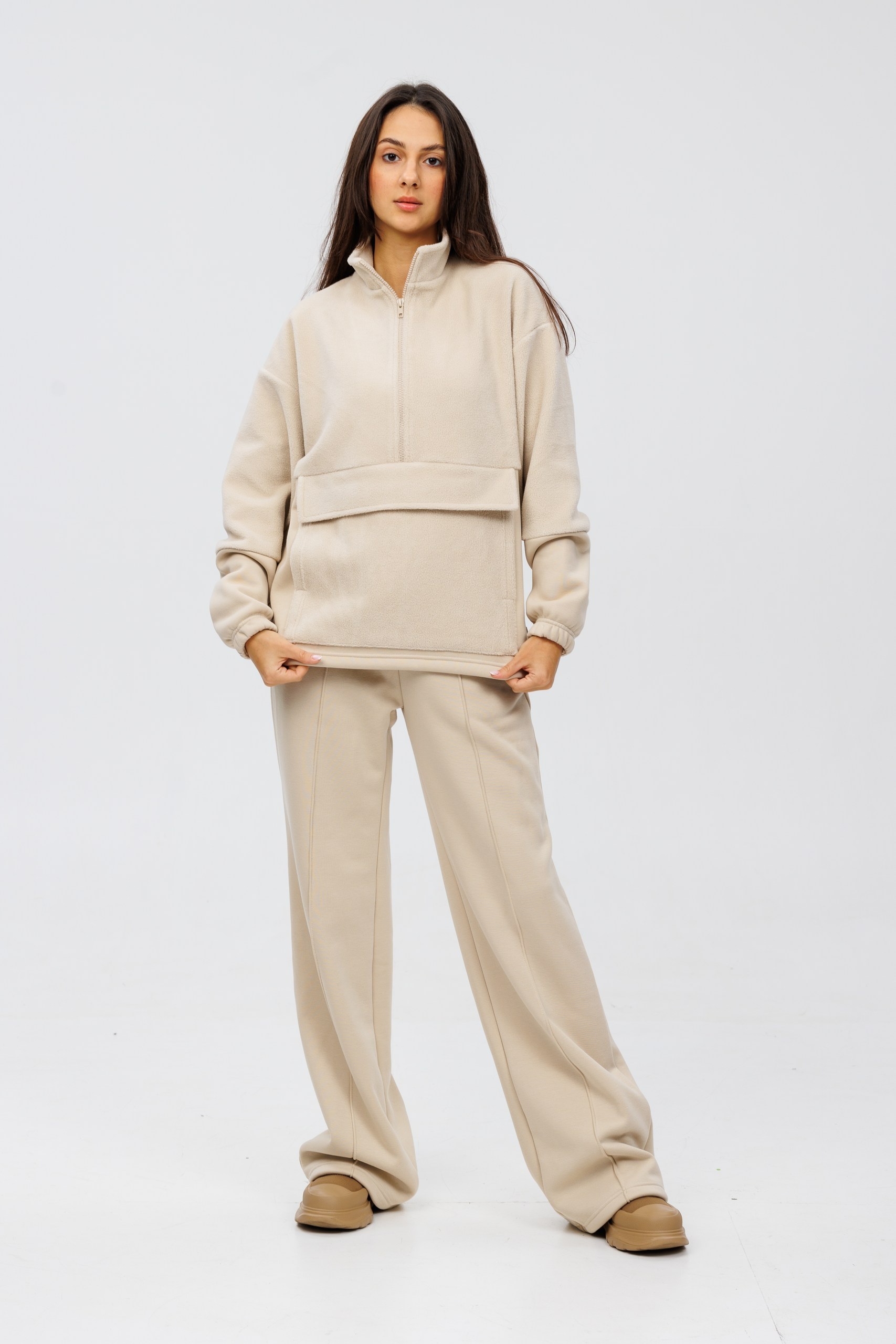 Теплый костюм с начесом для девочки - свитшот и брюки палаццо - отличный выбор для активного отдыха и зимних прогулок. Главное преимущество костюма для девочки в том, что начес выполнен по инновационным технологиям. Его называют «барашек» или «тедди». Начес со временем не теряет форму, плотность и внешний вид. А главное, не лезет, не скатывается и НЕ ОСТАВЛЯЕТ ВОРС НА ОДЕЖДЕ! Благодаря флису Тедди, костюм для девочки тёплый, мягкий, нежный, как одноименная мягкая игрушка. Он безумно приятен к телу, при этом, хорошо держит форму. Футер так же называют «барашком» из-за интересной изнанки, похожей на настоящую овечью шерсть. У футера Тедди гладкая хлопковая лицевая сторона. Он не закатывается с обеих сторон, а значит будет радовать вас долгое время. Костюм с начесом комбинированный, оснащен регулировочной резинкой по низу кофты и карманом-кенгуру с верхним клапаном-обманкой. Брюки имеют карманы в боковых швах и отстроченные стрелки, что добавляет женскому теплому костюму изысканного шарма.