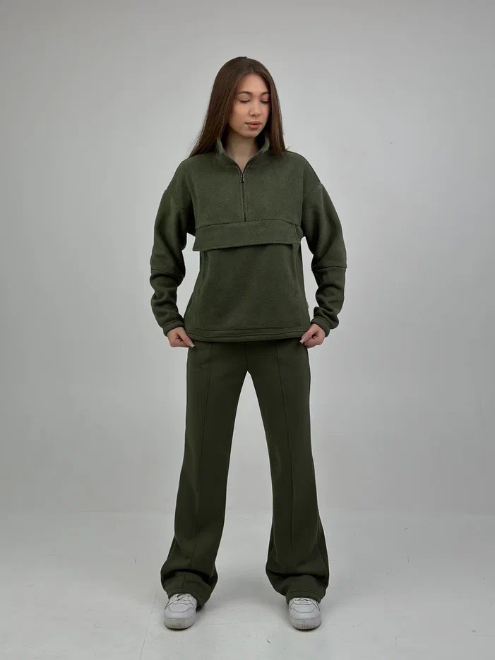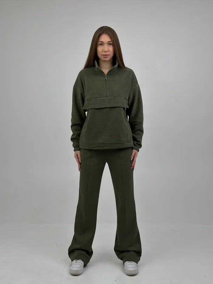 Теплый костюм с начесом для девочки - свитшот и брюки палаццо - отличный выбор для активного отдыха и зимних прогулок. Главное преимущество костюма для девочки в том, что начес выполнен по инновационным технологиям. Его называют «барашек» или «тедди». Начес со временем не теряет форму, плотность и внешний вид. А главное, не лезет, не скатывается и НЕ ОСТАВЛЯЕТ ВОРС НА ОДЕЖДЕ! Благодаря флису Тедди, костюм для девочки тёплый, мягкий, нежный, как одноименная мягкая игрушка. Он безумно приятен к телу, при этом, хорошо держит форму. Футер так же называют «барашком» из-за интересной изнанки, похожей на настоящую овечью шерсть. У футера Тедди гладкая хлопковая лицевая сторона. Он не закатывается с обеих сторон, а значит будет радовать вас долгое время. Костюм с начесом комбинированный, оснащен регулировочной резинкой по низу кофты и карманом-кенгуру с верхним клапаном-обманкой. Брюки имеют карманы в боковых швах и отстроченные стрелки, что добавляет женскому теплому костюму изысканного шарма.