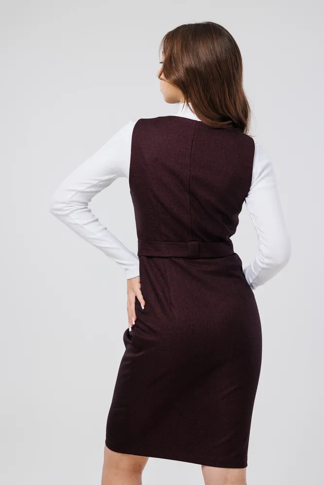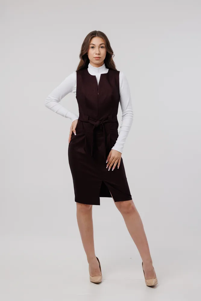 Сарафан отлично подойдет для работы в офисе, школе . Также этот женский сарафан в сочетании с нарядной блузкой можно надеть в кафе, встречу с друзьями т.д. Сарафан прекрасно сидит по фигуре, не стесняет движений. Застёжка расположена спереди на потайную молнию . Присутствует пояс , которым можно подчеркивать фигуру. Круглый вырез горловины. Отделка рельефным швом с потайными карманами. Сарафан без подкладки, рекомендуется использовать как второй слой одежды.