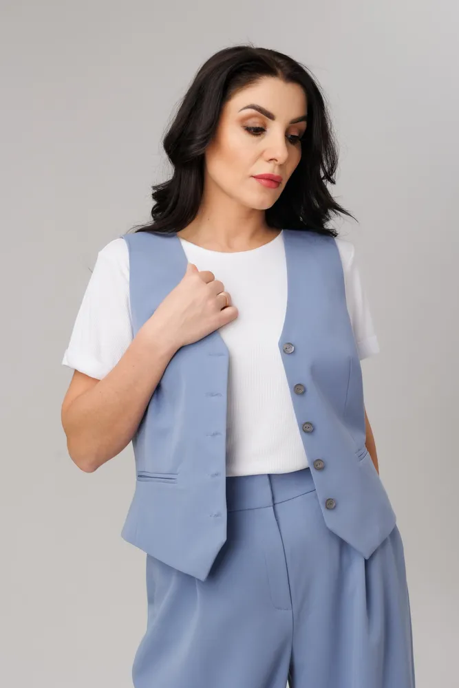 Классический женский жилет - базовая часть женского гардероба. Жилет с V-образным вырезом, полуприлегающего кроя подходит для образов на каждый день, удобно садясь на любую фигуру, не сковывая движений.