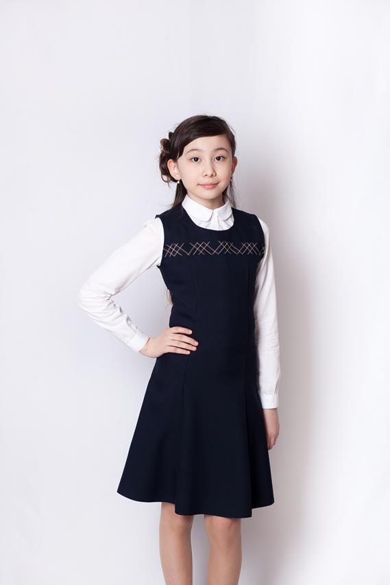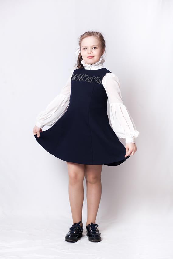 Сарафан годе полуприлегающего силуэта. На полочке кокетка из отделочной ткани (в клетку).