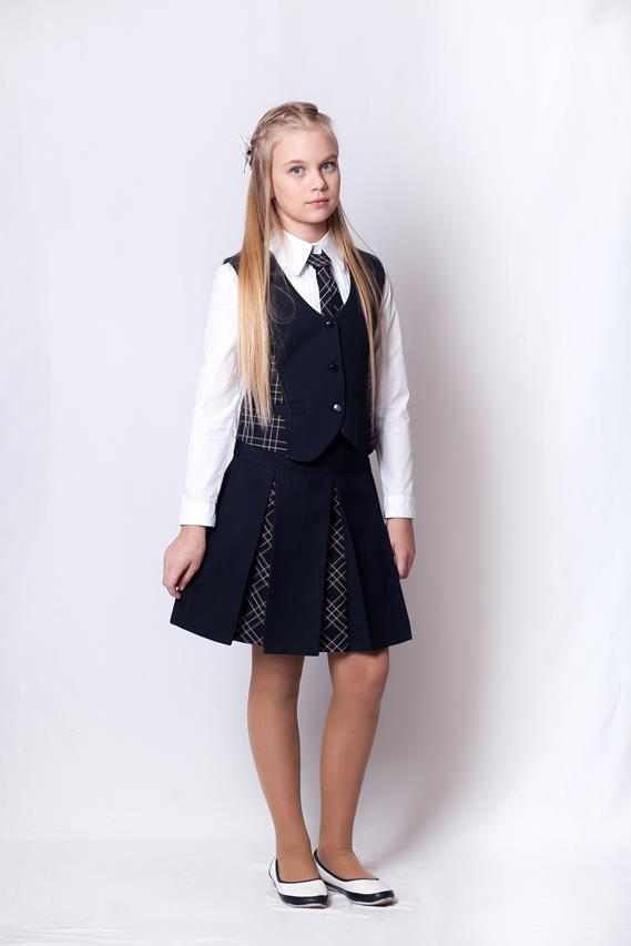 Юбка в складку комбинированная синяя шк.ткань