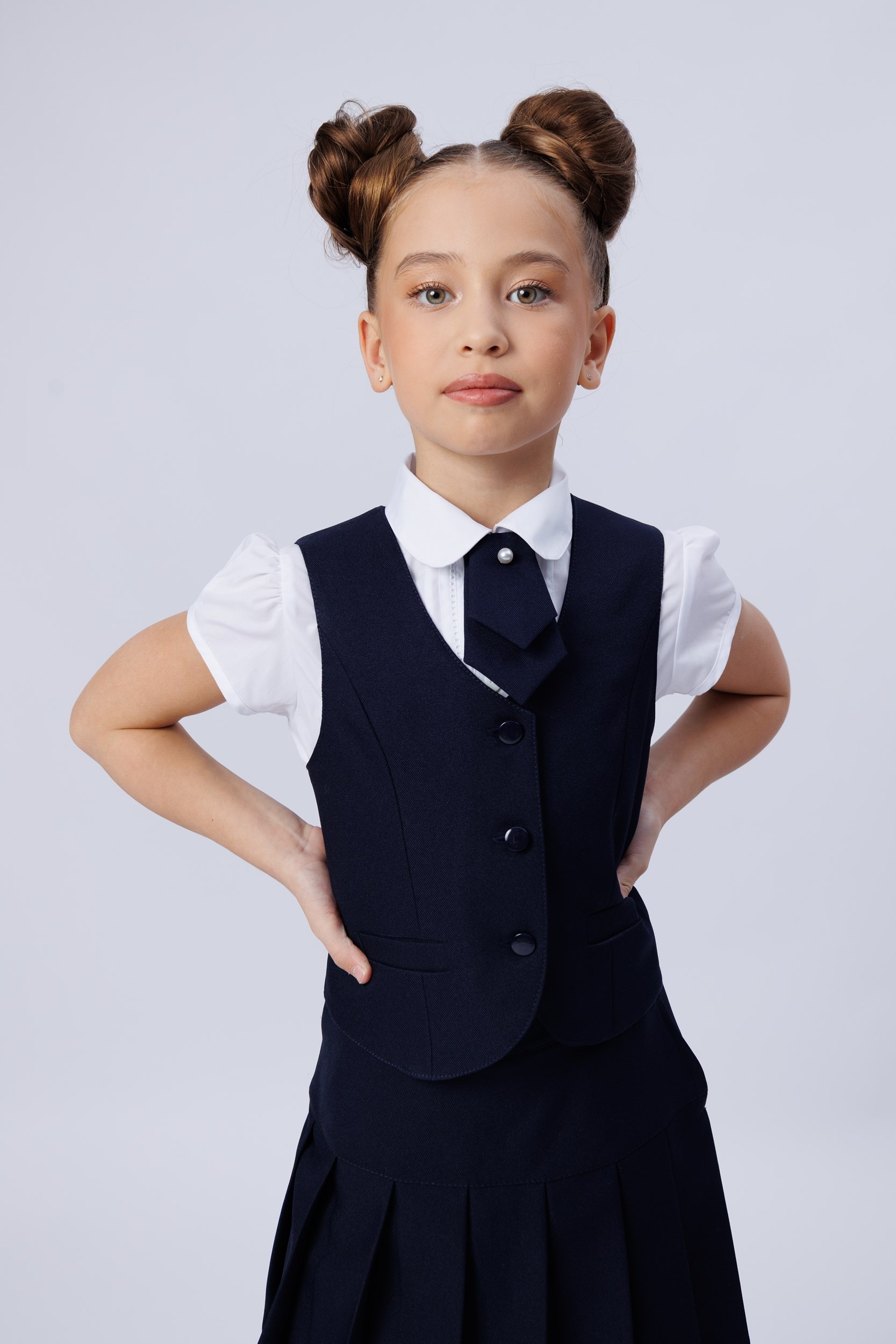 Жилет однотонный для девочки синяя шк.ткань